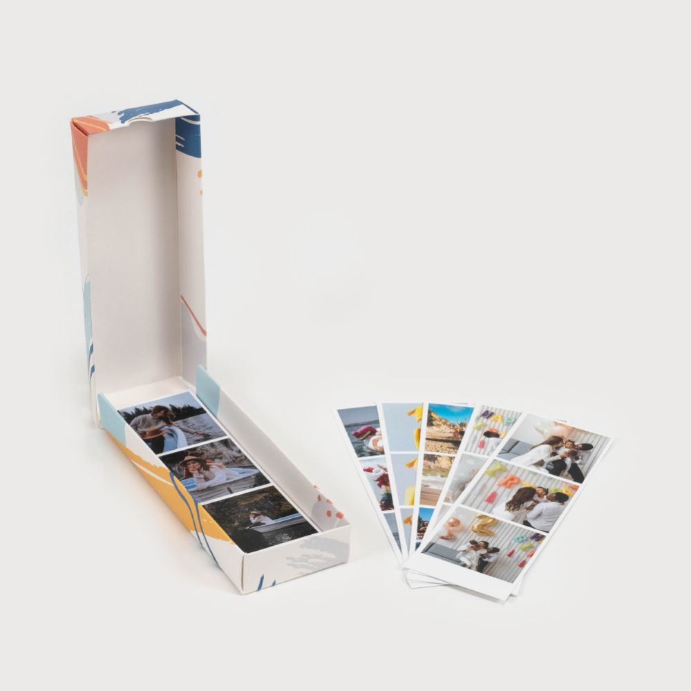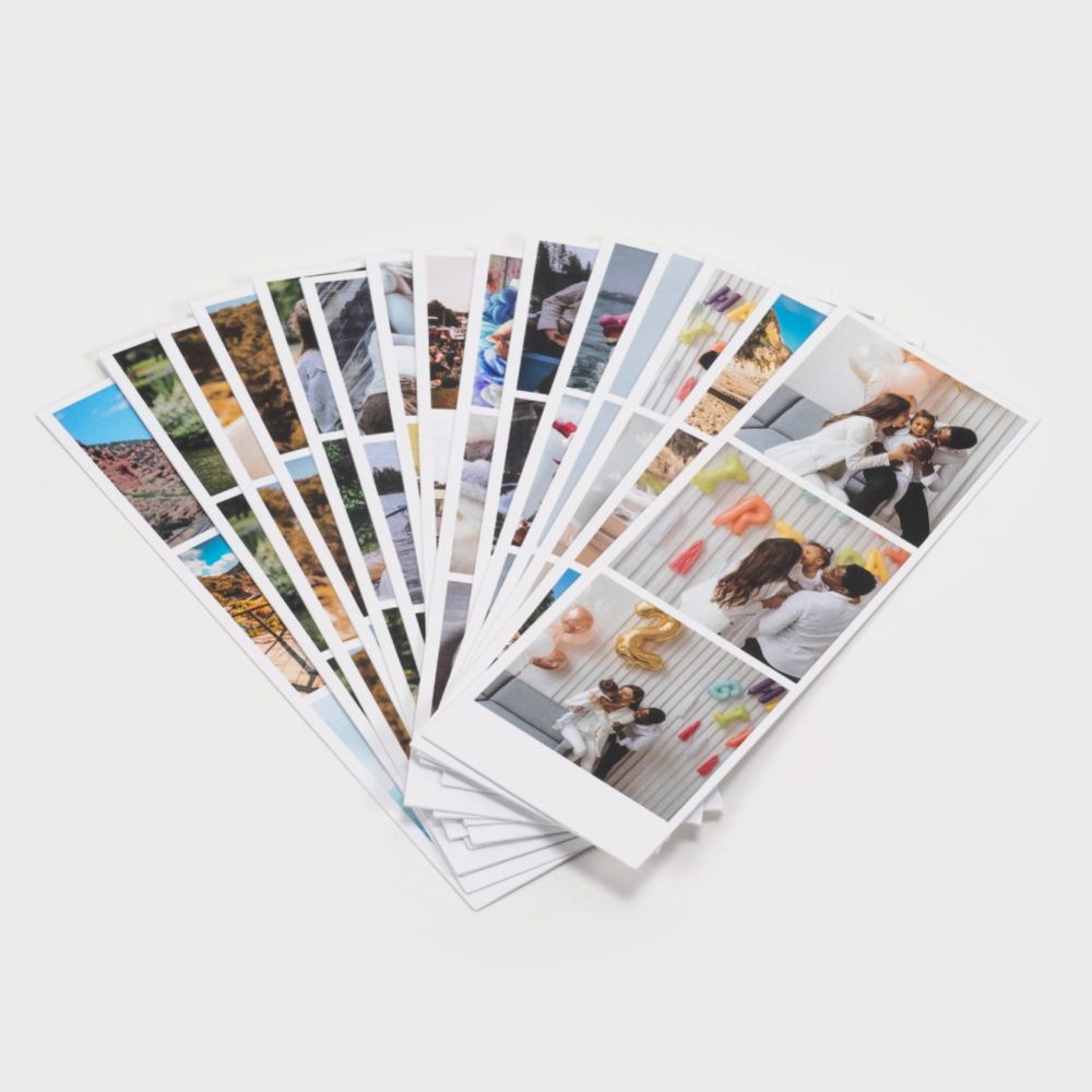 As Insta Stripes são impressas em papel couché de alta qualidade no tamanho 5x15cm e a sua impressão é digital. Podes adicionar uma legenda na parte inferior da foto no próprio editor, ou escrever à mão quando as receberes.