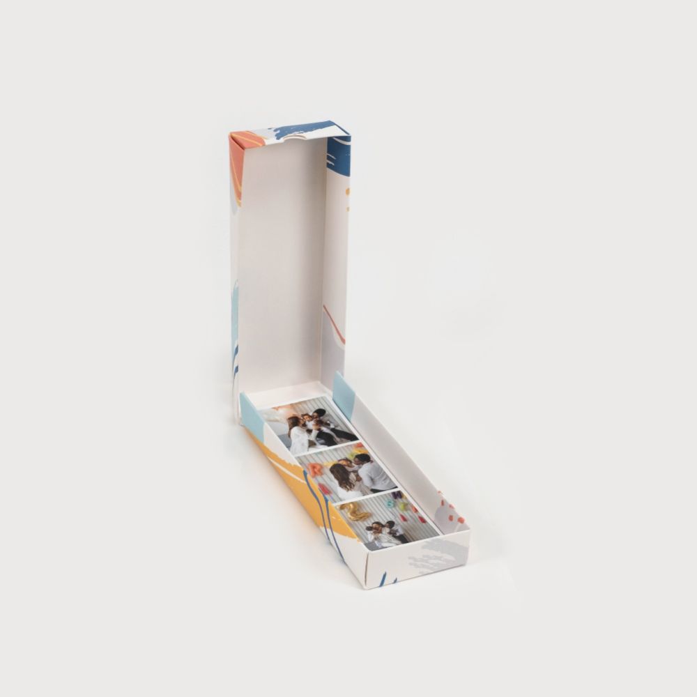A impressão digital das Insta Stripes é feita em papel couché de alta qualidade, com tamanho de 5x15cm. As Insta Stripes são fornecidas em packs de 16 unidades.